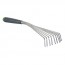 Corrosion-resistant 9 teeth fan rake with powder-coated steel head. Plastic handle.
