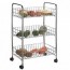 Made from sturdy chrome tube and wire its three storage shelf baskets can hold all manner of goods.