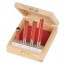Brand New Kitchen Router Bit Set (4 Pieces) Comprehensive set for kitchen fitters. TCT cutting edges and strong, hardened steel shanks. Supplied in a wooden storage case. Includes: 1 x straight bit 63 x 12.7mm with 1/2" shank; 2 x straight bits 50 x 12.7mm with 1/2" shank; 1 x flush trim bit 25.4 x 12.7mm with 1/4" shank.