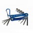 Chrome vanadium steel with corrosion-resistant anodised aluminium frame. Includes Phillips 0, 1, 2 and 3, slotted 3, 4 and 5mm, carbon steel sockets: 6, 8, 9 and 10mm, and 1/4" carbon steel adaptor. Complete with keyring and karabiner.