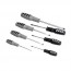 Soft-grip handle screwdrivers with satin chrome vanadium steel blades, and hardened and tempered magnetic tips. Includes: slotted flared 3 x 75mm, 5 x 100mm, 6 x 100mm, 8 x 150mm; Pozidriv: PZD0 x 75mm, PZD1 x 100mm, PZD2 x 100mm.